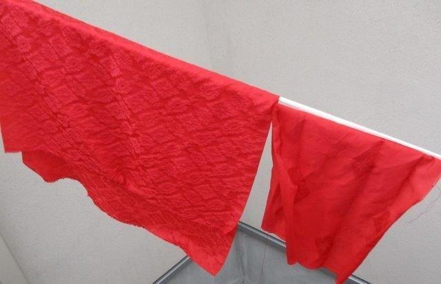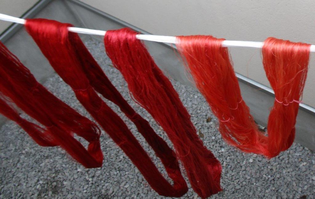 生糸・練糸・有職織物の染色(紅花による紅染め)